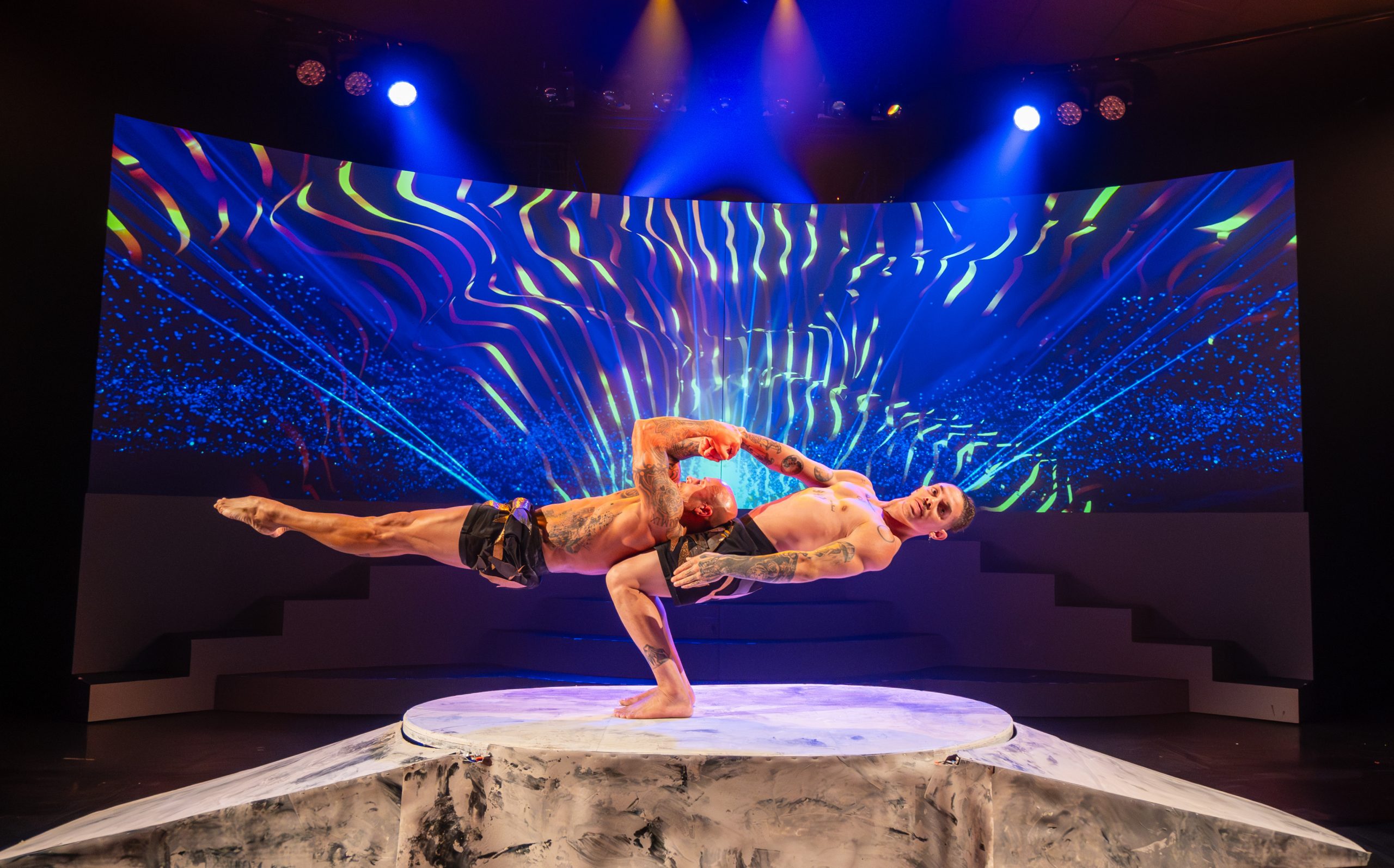Le spectacle est composé d’artistes de talents qui proposent tout leur savoir faire, leur passion et leur expérience avec de magnifiques attractions acrobatiques main à main, Mat chinois au milieu du public sangles aériennes mais aussi des numéros de mapping sur les danseurs des interactions entre l’écran et les artistes ou encore le numéro de manipulation laser unique au monde.
